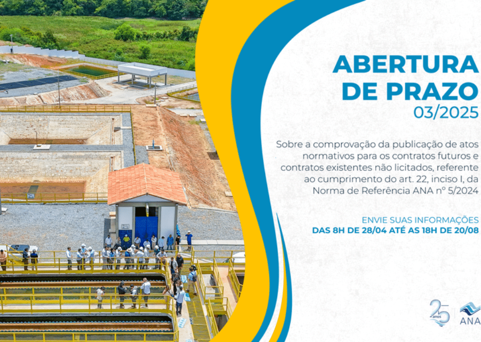 Agência Nacional de Águas e Saneamento Básico (ANA) está com o Prazo nº 04/2025 aberto para receber das entidades reguladoras infranacionais (ERIs) – municipais, intermunicipais, estaduais e distrital – do setor […]