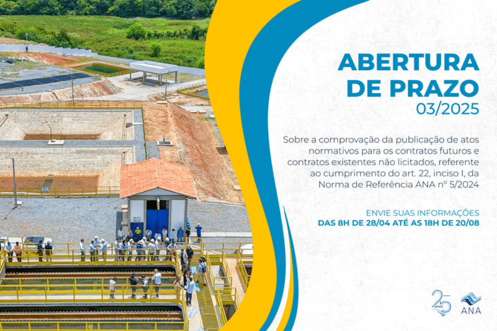 Agência Nacional de Águas e Saneamento Básico (ANA) está com o Prazo nº 04/2025 aberto para receber das entidades reguladoras infranacionais (ERIs) – municipais, intermunicipais, estaduais e distrital – do setor […]